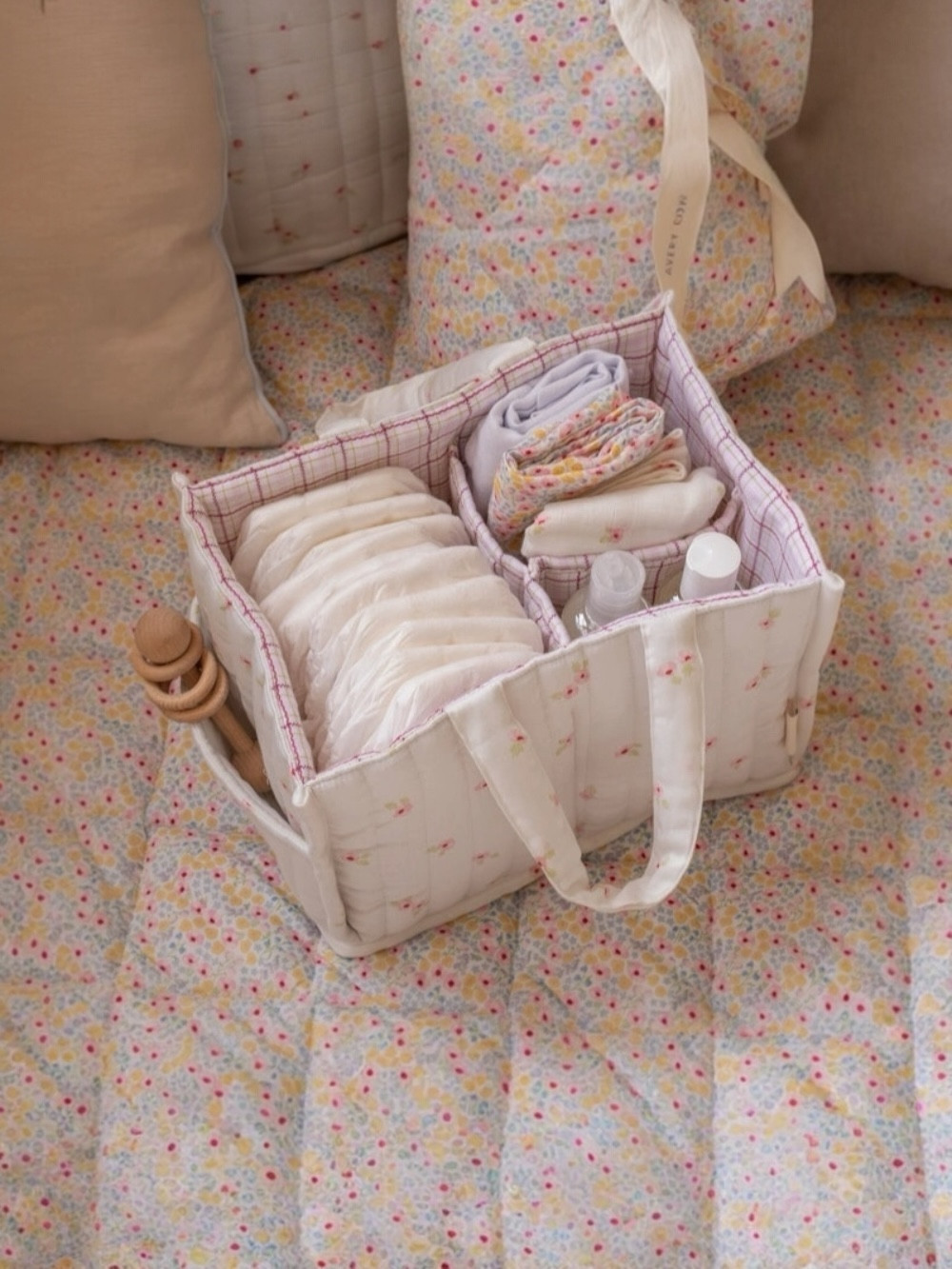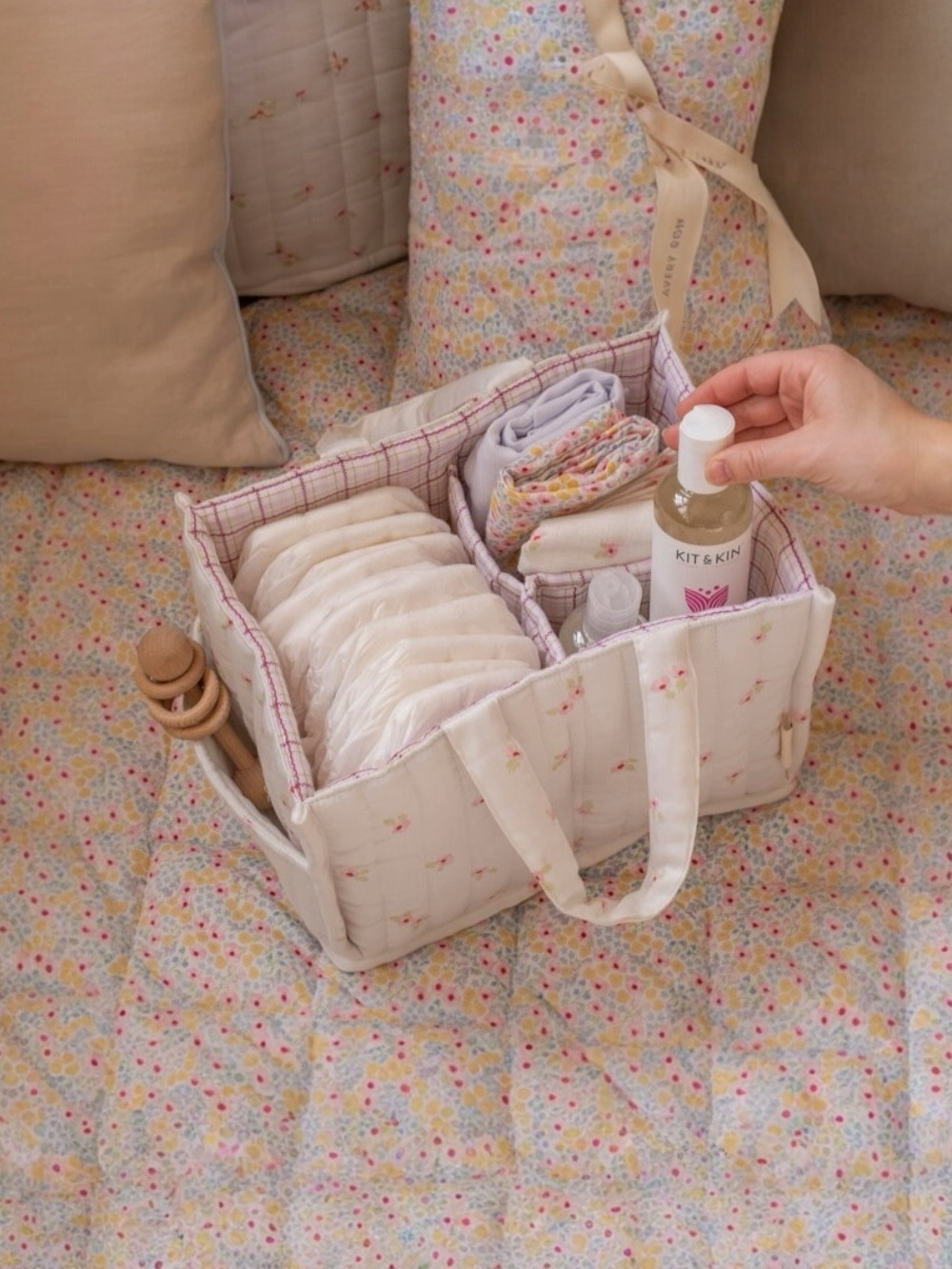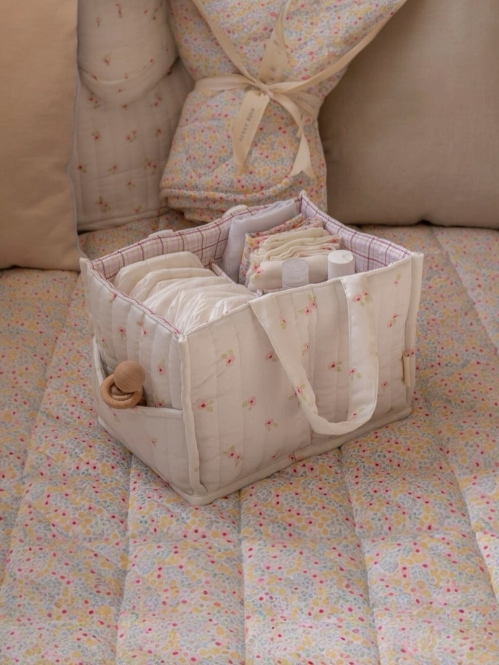 Gracias a sus asas resistentes y fáciles de agarrar, nuestro organizador de pañales acolchado mantiene todos tus esenciales de cambio siempre a tu alcance. Ya sea que te desplaces de la habitación del bebé al salón o salgas de excursión, lleva contigo todo lo que necesitas para el cambio en cualquier lugar.