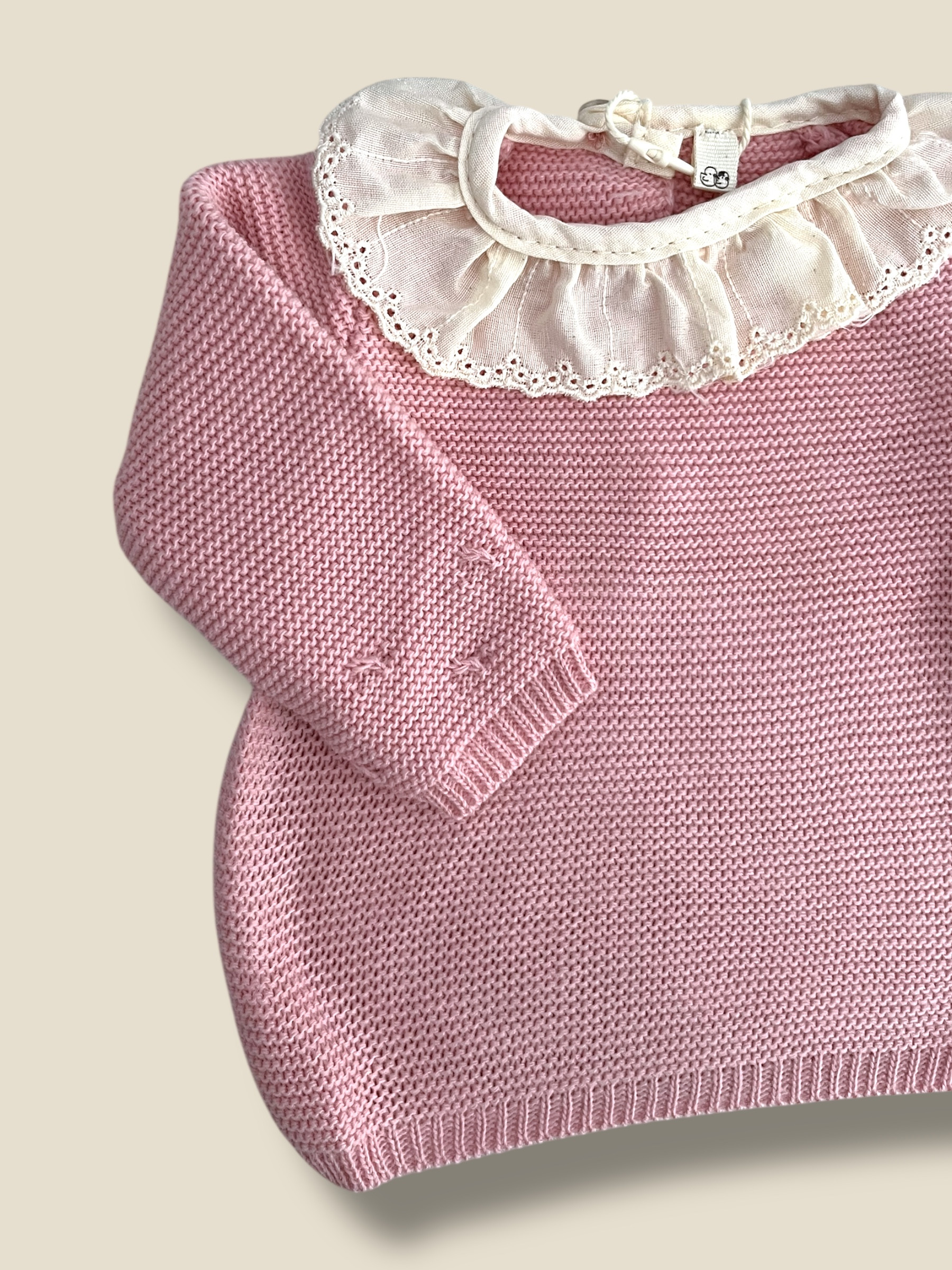 Jersey con cuello de tira bordada Rosa Antiguo.