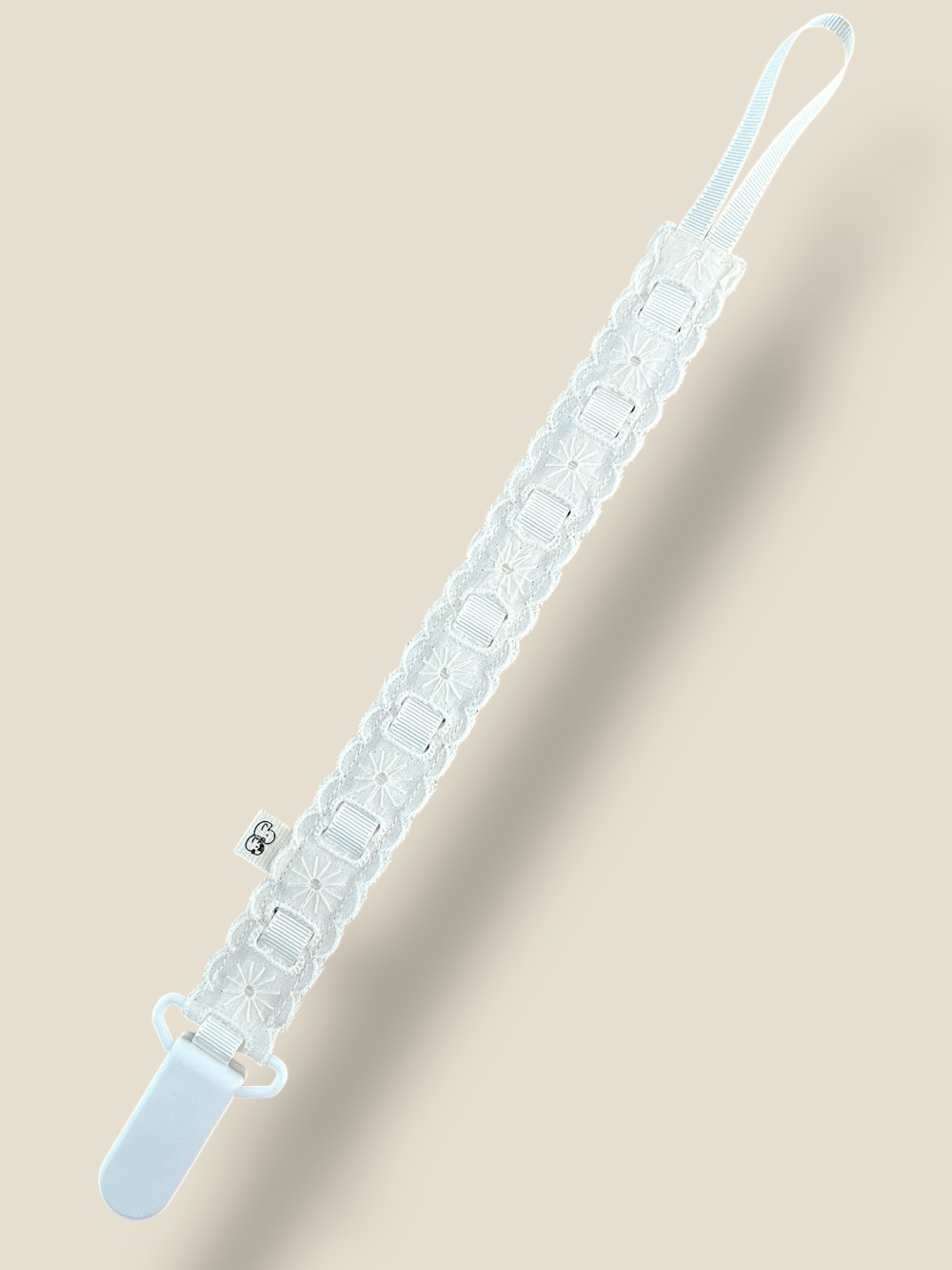 Chupetero de Tira Bordada Estrella Beige.